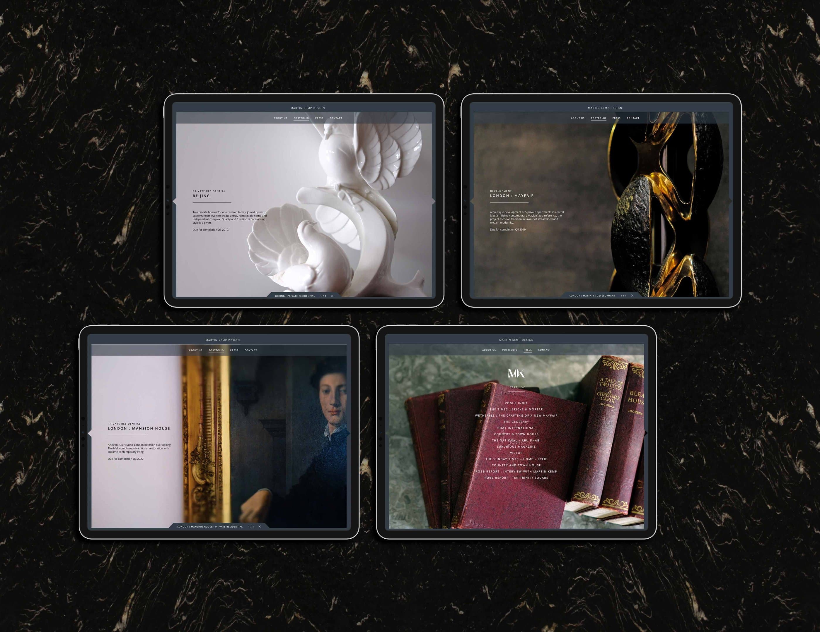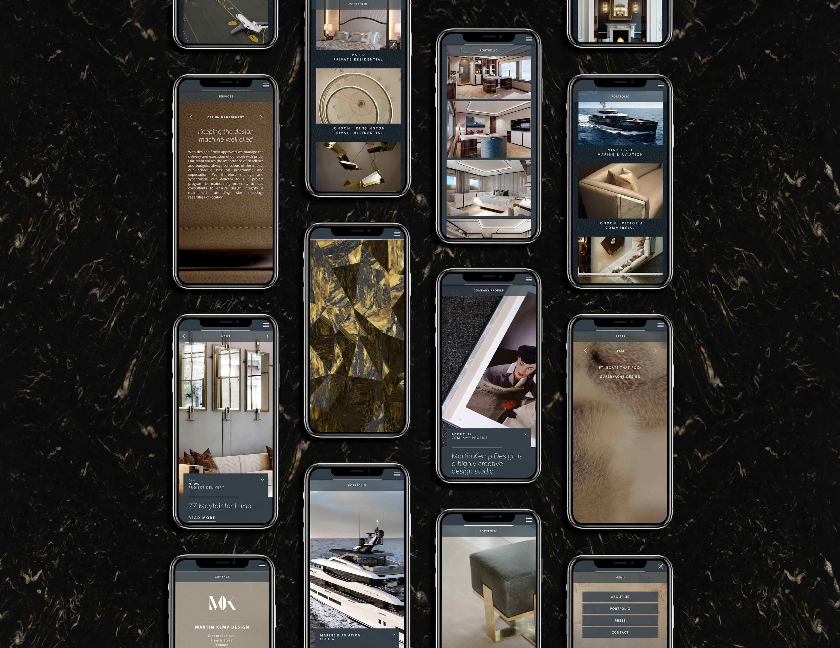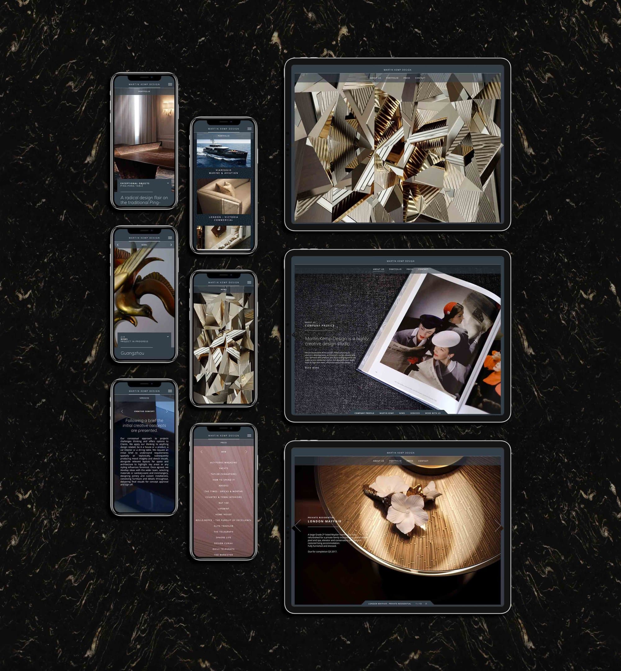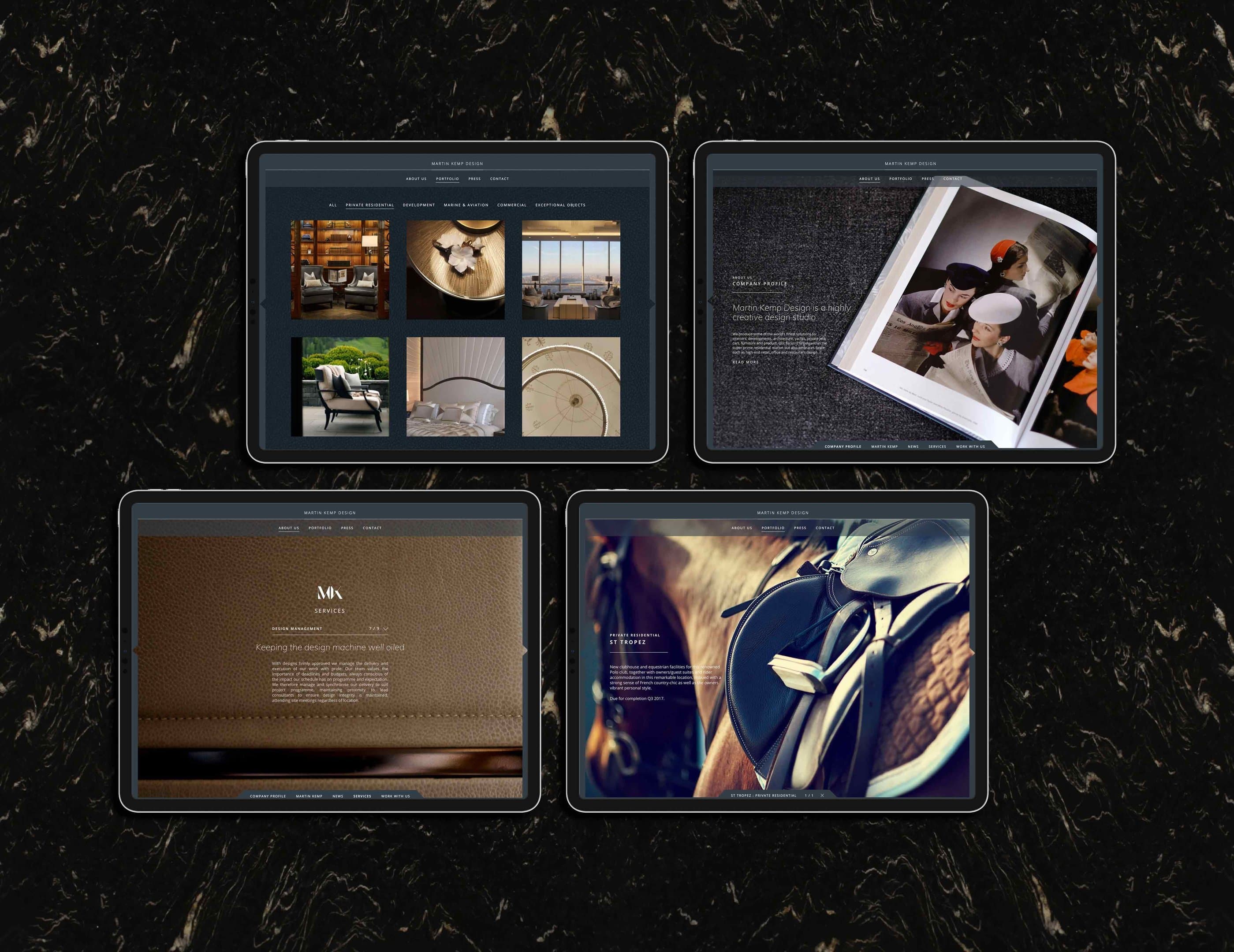 Every piece of visual communication conveys the luxury and exclusivity of Martin Kemp Design’s offer.