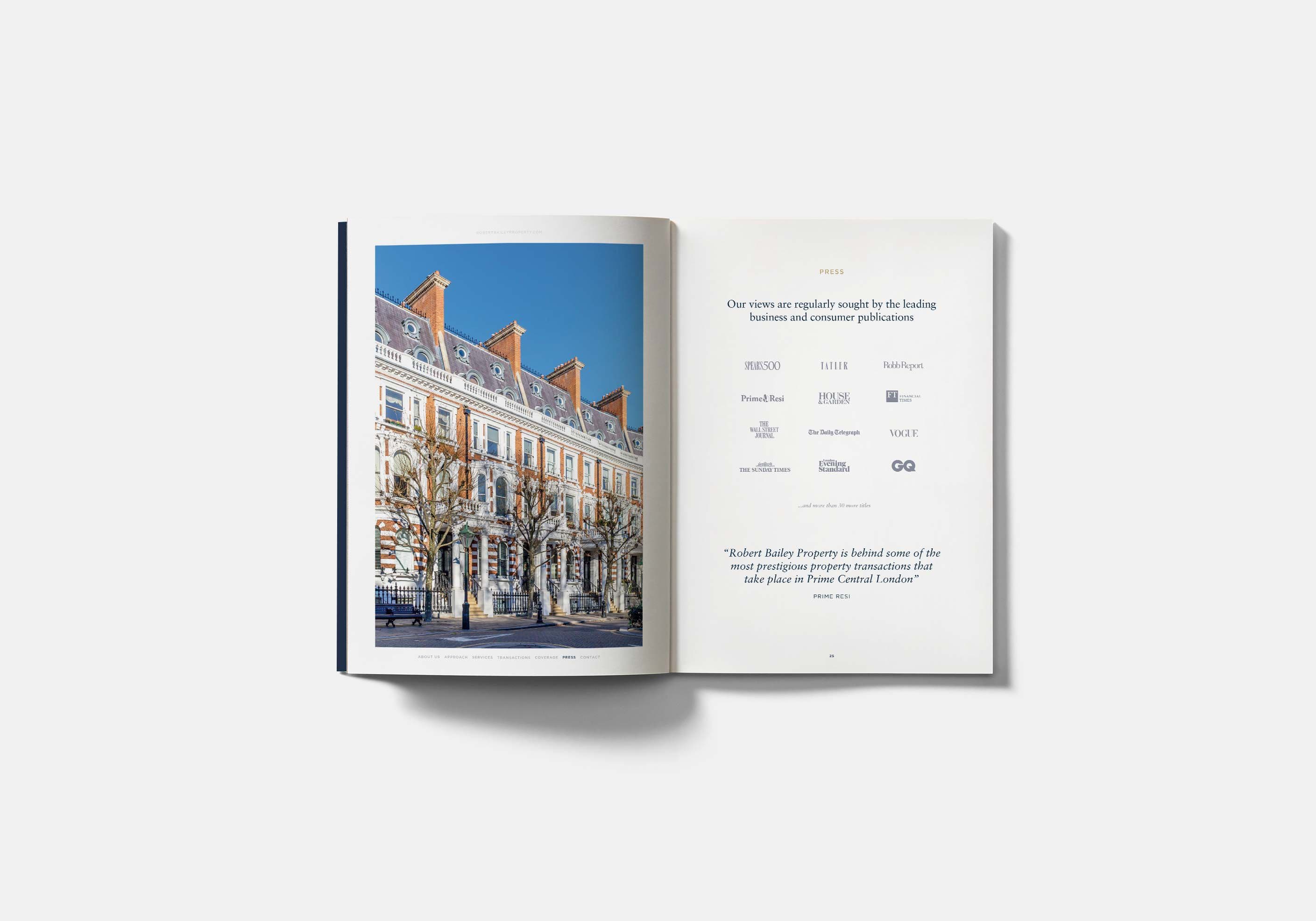 Felix&Friends have produced a new design approach for Spears 500 property agency Robert Bailey Property. Considered by Tatler to “boast one of the best little black book of contacts in the business”, Robert Bailey Property connects buyers to the most desirable and distinguished properties in London, opening doors that few other buying agencies can.